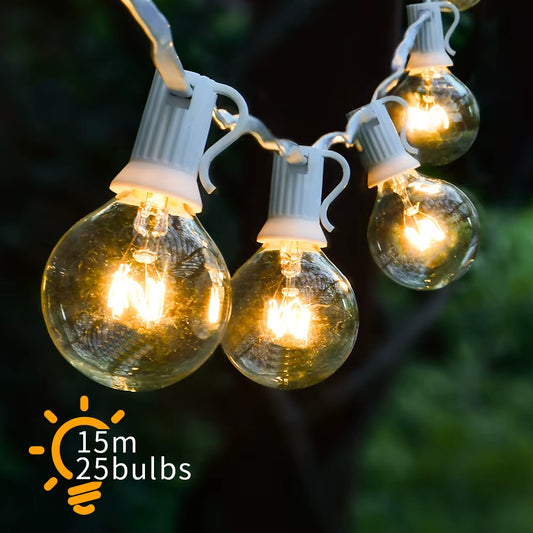 30M 15M Outdoor Light Garland White Cable Waterproof String Lights Street Bulb Garland for Garden Wedding Lights Decoration